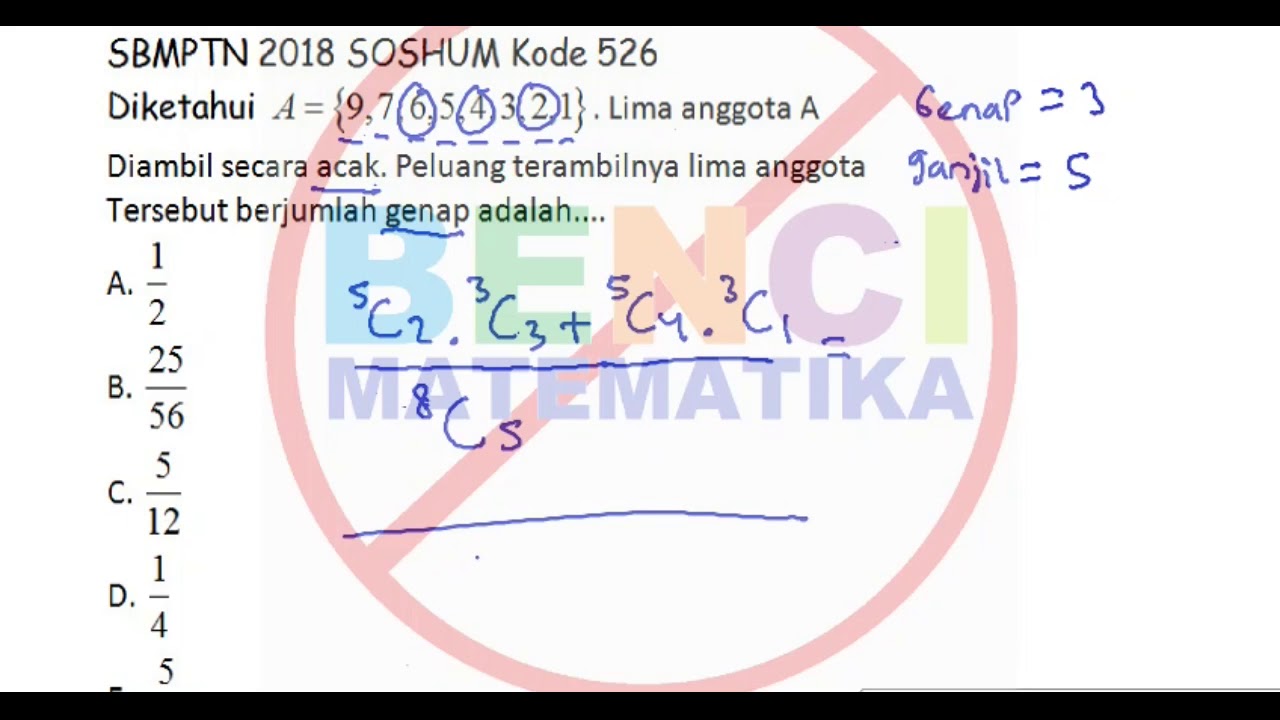 Sbmptn 2017 tkpa 202 sebuah bilangan ganjil 5 angka diketahui memuat tepat 2 angka genap dan tidak memiliki angka berulang serta tidak memuat angka 0. Kumpulan soal sbmptn 2019 dan kunci jawaban gratis bisa download di sini. Pada kesempatan ini, englishiana ingin membagikan beberapa contoh soal sbmptn untuk membantu sobat englishiana semua berlatih mempersiapkan diri menghadapi sbmptn yang sebentar lagi agak dihadapi. Peluang terambilnya kelereng putih 38 kantong ii. Sbmptn 2017 tkpa 202 sebuah bilangan ganjil 5 angka diketahui memuat tepat 2 angka genap dan tidak memiliki angka berulang, serta tidak memuat angka 0.